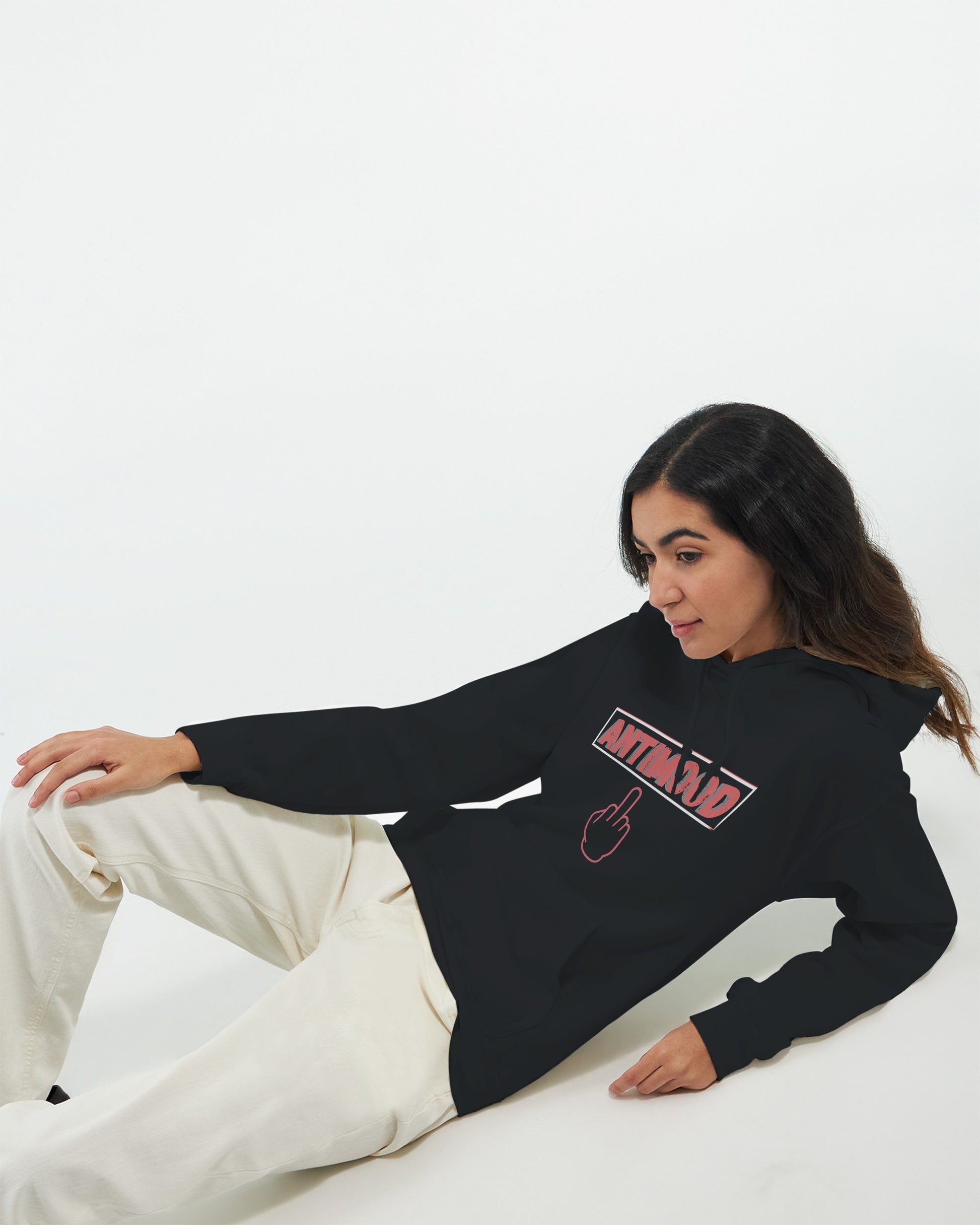 Logo frontale oversize, e sotto — così, in bella vista — un elegante dito medio.