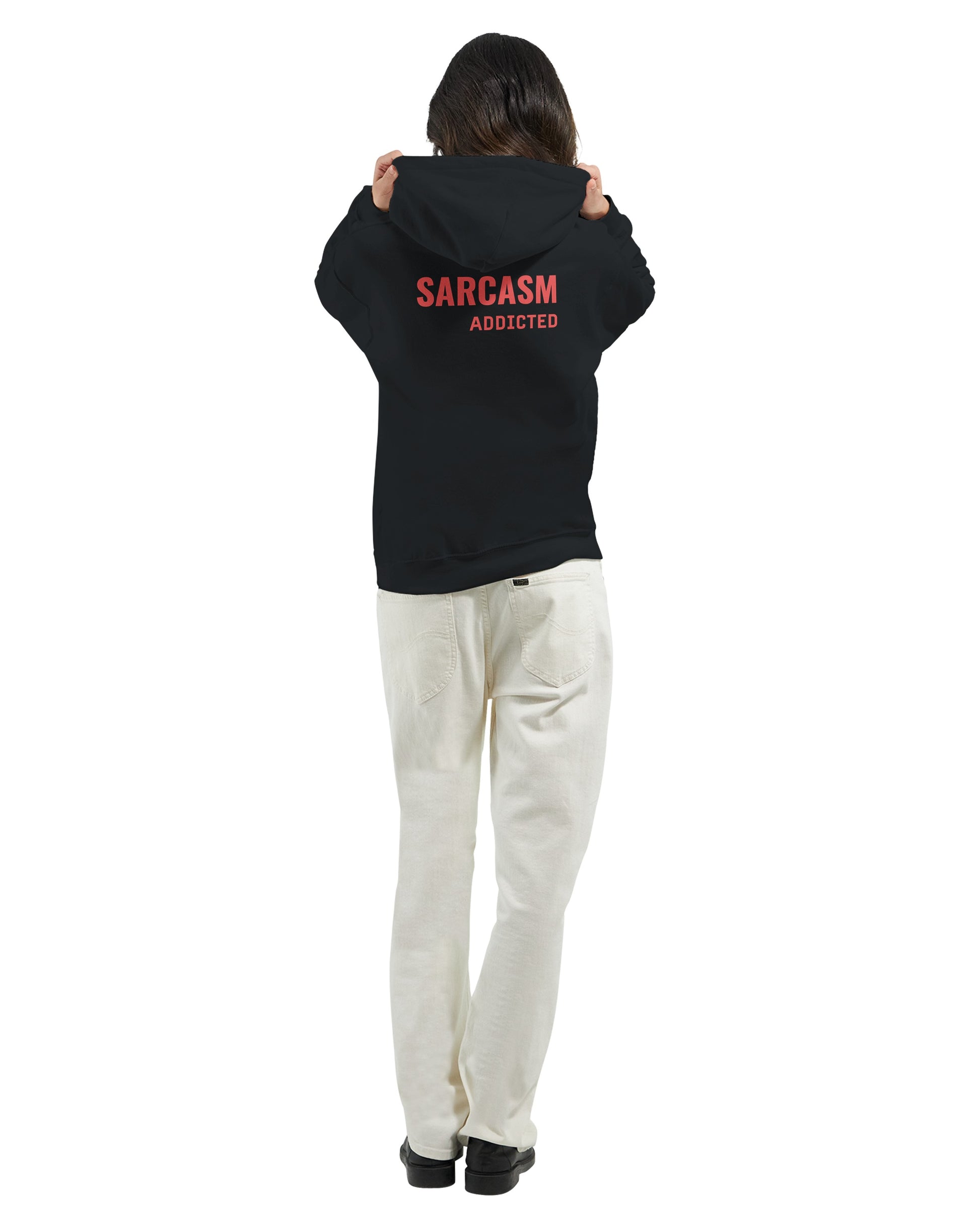 “Sarcasm Addicted” campeggia sulla schiena, come un manifesto di intenti.